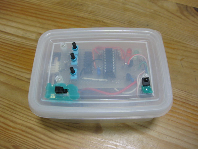 神出鬼没だし,動き早いし,そもそも人がいたら寄ってこないしね X-S1のズームを活かして野鳥が撮れたら・・・・素敵じゃん♪ そこでピコーンとアイデアが浮かびました まぁ技術的なシステムはすでに先人が実施されていますが,いかに簡単に作れるかの実践です 鳥が来たら反応するセンサが必要ですが,今回は一番手っ取り早そうなのは焦電センサです 人に反応して電灯をつけるシステムは焦電センサが一般的です 野鳥撮影なので,屋外の電源がない場所,しかも設置が簡単なほうが良さそう 回路から自作するとサイズやパッケージングが問題になるのは見えてるので,条件に合う既製品を探してみると・・・・・ありました http://akizukidenshi.com/catalog/g/gM-04425/ 自作しても600円では完成しません,こいつは安いです これを改造していきます 当初,こいつのLEDを赤外線LEDに変えれば,とりあえずシャッターは切れるだろう,と思ってましたが大間違い 受信センサは38kHzで変調されていて,この周期じゃないと反応しないんです http://akizukidenshi.com/catalog/g/gI-03292/ んで,変調型リモコンを作ったわけですが,これまた不思議なことにVer.1の受信プログラムはどんなリモコンにも反応するようにしてるのに,このリモコンでは反応しない・・・Orz この理由は不明なんだけど,であれば受信機も専用コード受信対応にしちゃえーと作ったのが前回の話 この応用で専用コードによる送信機能をInterigent LEDライトに組み込めば,鳥を検知したら赤外線を発光する仕組みが構築できます まずはある程度最終形態を模擬してバラック組みによる機能テスト ハードを新しくすると必ず躓き(笑)トライ&エラーを繰り返しで,何とかクリヤ 実は赤外線LEDは100mAと大きな電流が必要で,発光LED数mAのレギュレータからは供給できず,Trを組んで対応したりとちょっと大変でした 機能はOKになったので,パッケージング 下側の隙間にかろうじて収まりました 左には赤外線LED,上には電源スイッチを追加してます 最後に発光LEDは鳥が驚くかもしれないので外したら,なぜか赤外線が出なくなる おそらく消費電流が少なすぎでレギュレータが動かなかった? などのトラブルも解決しつつようやく完成 明日,実践テストしてみたいと思います 11/17はしし座流星群とのことで急遽プログラムを組んで撮影してみました |