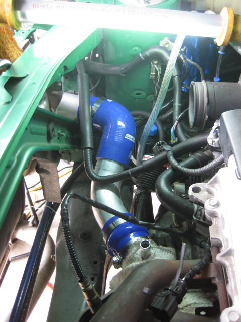 どうやらエキマニやらマフラーやらに近いので熱い空気を吸っている様子 バンテージを巻いていないパイプが触れないくらい熱い (だけど,NAのときにどうだったか不明) 吸気温度を下げる努力をしたいと思います まずは配管の準備をちまちま進めてようやく部品がそろった φ60のアルミパイプはトラストの60°を使用,長さを調整して自作治具でビードを立てました ありあわせの材料で作った治具なので,プレス跡が汚いですが見えなくなるのでOK(笑) カットは金鋸とエアソーを併用し,ヤスリでバリ取りしましたが結構大変 こいつらをつなげるとこんな形 そんでもって仮設置でイメージ エアクリは左タイヤ後方バンパー内に収納 この後,固定ブラケットを製作し,位置決め完了まで行い力尽きました 明日には完成するかも
