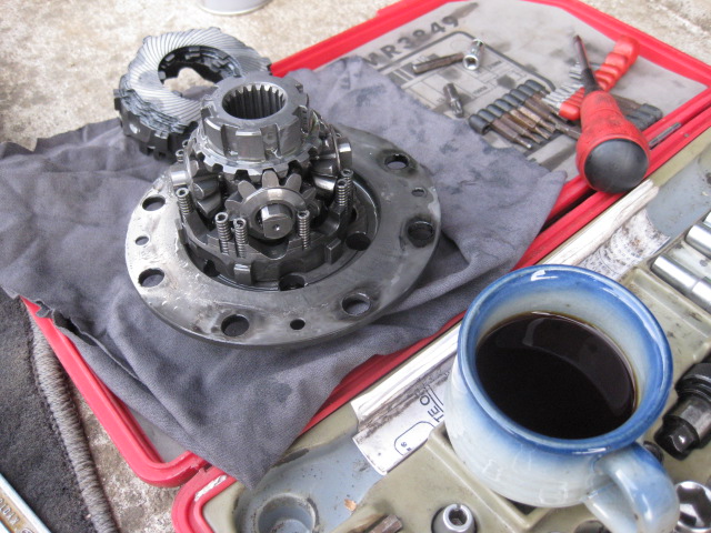 ちまちま部品を外して,さっくりミッションを降ろします まずはクラッチ 左の純正はAisin製で,右の新品はExedyの純正相当品 ふーむ,やっぱりあんまり減ってないかも サクッと交換完了 レリーズベアリング周りの汚れが酷い 後日,清掃予定 さてここからOption せっかくなので,どーせなので・・・・LSDを1Wayにしてみよう ミッションケースに入っている磁石に付着した鉄粉 まぁまぁ少ないほうでしょう 難儀するのがリングギヤ外し ネジロック材付きかつトルクが高い 万力必須です LSDを分解した所で珈琲ブレイク プレッシャプレートの減りも許容範囲だったので,1.5Wayから1Wayにカム変更して組み上げ ここで一時中断 ミッションバラシの際,シフトフォークの位置決め装置シフトデイテントボールなるものがあるのですが(名前は今日知った),取り付けがヘキサゴンで舐めやすい 何度となく作業しているので遂に今日逝ってしまわれました ネッツに行き,いつものようにわからないとか言われつつ,整備書見ながら「これ!」って感じで注文完了 クラッチグリースと液状パッキンも10年以上前の代物で使いもんにならないので,これから通販せねば というわけで完成は来週かな? |