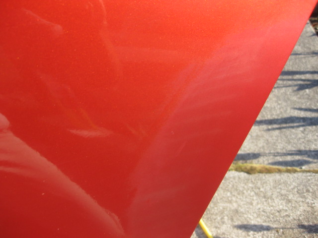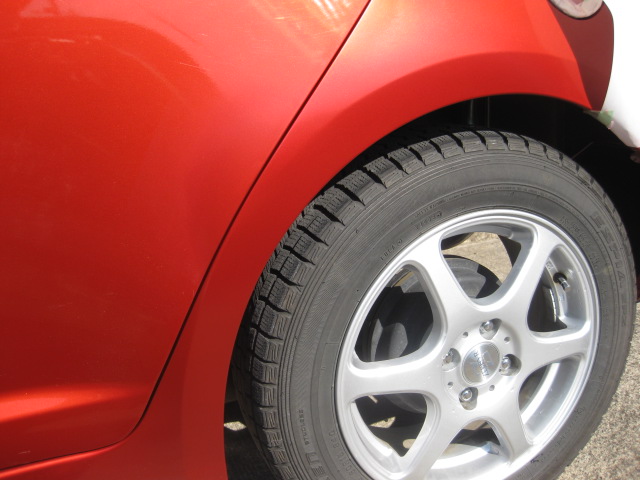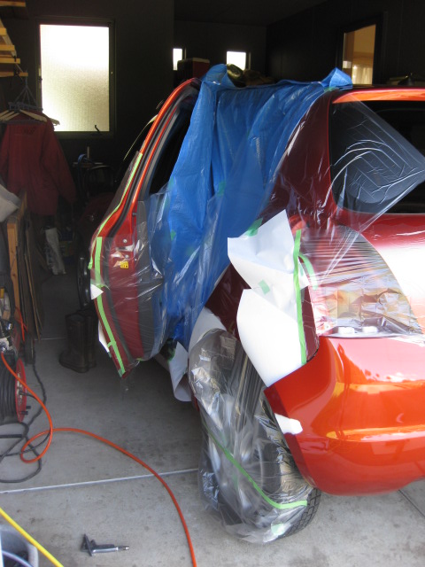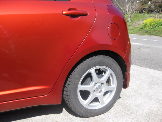職人さんに調色してもらいました タイミング悪く現車あわせは出来ず,データ通りの調色となりました ドックインしてマスキング ベースカラー塗装完了 ここで失敗 表面をコンパウンドで磨いたところ,メタリックが露出&研磨傷付きまくり テストピースでは問題なかったんですが,触っちゃいけなかったのかも 再塗装して対応しましたが,焦った! 再びドックイン マスキングのパターンもクリア用に変更しています ここまでが土曜日の作業 夜ガレージ内でクリアスプレーを何度が実施しておきました 一晩明けて日光でチェック ちょっと赤味が強い感じになりましたがおおむね良好 コンパウンドで磨いてようやく完成しました 写真では凄く綺麗に見える(?)けど,肉眼で良く見るとムラなどあります 今回ほぼすべての材料を購入しましたが,かかった費用は8000円 プロの塗料の使用感最高でした その後のクリアは市販の缶スプレーだったので,吹きづらくイマイチな仕上がり 自分的には75点かなぁ(ほぼ満足) 色合わせで+10点 磨き作業で+10点 DIY技術で+5点のマージンがありそうです 楽しい作業でした