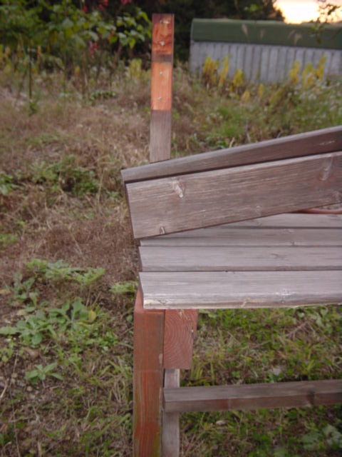数年前に作ったベンチですが,先日何者かが車をぶつけたらしく,破壊されました