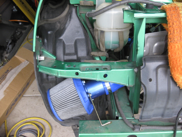どうやらエキマニやらマフラーやらに近いので熱い空気を吸っている様子 バンテージを巻いていないパイプが触れないくらい熱い (だけど,NAのときにどうだったか不明) 吸気温度を下げる努力をしたいと思います まずは配管の準備をちまちま進めてようやく部品がそろった φ60のアルミパイプはトラストの60°を使用,長さを調整して自作治具でビードを立てました ありあわせの材料で作った治具なので,プレス跡が汚いですが見えなくなるのでOK(笑) カットは金鋸とエアソーを併用し,ヤスリでバリ取りしましたが結構大変 こいつらをつなげるとこんな形 そんでもって仮設置でイメージ エアクリは左タイヤ後方バンパー内に収納 この後,固定ブラケットを製作し,位置決め完了まで行い力尽きました 明日には完成するかも
