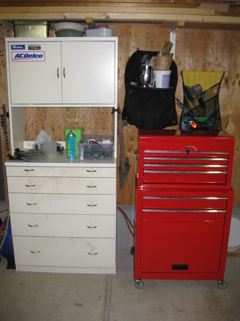 お買い得セットは赤だけだったという理由で赤になりました 安物なので鉄板は薄い 一応レールはベアリングだけど,汎用の引出し用レール だけどまぁ数万円するのはどうせ必要ないので,コスパでは十分です 購入先はここ これまで使っていた棚とツーショット これも1万円くらいの食器棚だったかな 引っ越していらなくなったのを使っているが,引出しの底がベニヤでたわみがひどくなったりカビ生えたり重さに耐えられなかったりとだんだん不満がありました あと動かせないことね これから少しガレージの改造を進める予定です |
