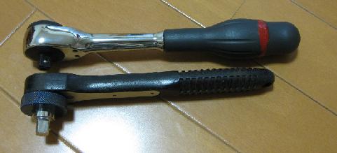 FACOMのラチェットハンドルです このJ360というのはファーストアクションという特殊な機能がありまして,グリップを回すとコマが回るんです と,言葉では説明しにくいので動画を見てください 今まで使っていたラチェットとの比較 TengtoosのFRPラチェットを長年使用してました もちろん安いんですが,スイスのメーカでそこそこ良い物がセットで売ってたものです こいつは44ギヤで,ストロークが確保出来ないところでイラッとすることが何度あったことか(笑) とは言え軽くて小さいので使い心地は悪くなくクイックリリースもついてて愛用してます 写真ではアストロの早回しをつけた状態です J360は一回りでかい重い印象,ギヤは60歯でFacom標準の72歯より少ないですが,グリップで回せるので十分な感じ ヘッドの厚み比較 早回しを外した状態と比較すると,J360は厚みがあります ただ,黒い丸い部分が回転方向切り替えですが,早回しもできる構造ですのでこんなもんかなと グリップ回せばいいのでそれすらも要らないのかもしれないけど いろんな場面で活躍しそうなので買ってみました |