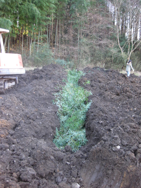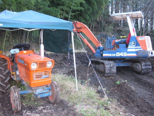 というのは,隣の空き地を畑にするらしく,ショベルカーが入ってます そいつを使って良いってことになったのです いいですねぇ,重機があるって 土曜日の成果 全面掘り起こしとど真ん中に暗渠排水用の溝を掘りました 日曜日 朝から竹を10本ほど切り出し,敷き詰めます これを埋め戻して,全体をならしたら踏み固まっちゃったので再度掘り返し 重機じゃないと掘り出せないようなガラも幾つか出てきて,助かりました 丸二日やっても軽油30リットルって,結構燃費いいねぇ お隣さんは施設関係で畑をやるとのことでしたが,このショベルカーは個人所有だそうで しかもブルとかもあるらしい さらに5年かけて自宅を作ったとかで,なんとも凄い人と出会いました これからはいろいろお世話になりそうです 早速明日はトンプンが大量に搬入されるのでおこぼれを頂く予定です たぶん2トンほどになるでしょう