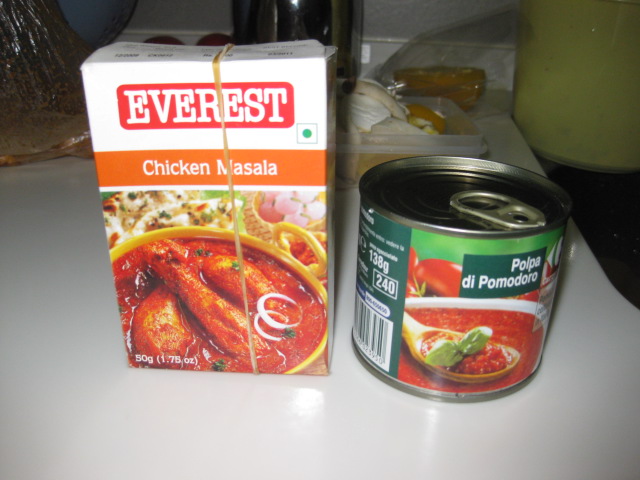 イタリア土産にトマト缶を頂きました(写真右) イタリア語がわからず,味付きなのかただのトマト缶かお楽しみーというお土産でした 翻訳機にかけるとトマトの果肉と書いてあるらしい それと以前インド土産にじぇっとさんからもらったスパイス(写真左) こいつは万能調味料で,カレーでも炒め物でも辛味をつけるには最高です まずは鶏肉にインドのパウダーをまぶします これを炒めてパプリカとエリンギを加えてさらに炒め,イタリアのトマト缶を投入,コンソメ少々,塩コショウで調整して完成 チキンのピリ辛トマト煮ですが,こんな料理あるのか? あえて味付けを控えたのであっさり味になりました 鶏の下味にもう一味加えたり,煮込みの段階でコクが出るものを加えるとかなりいいかも イタリアとインドが日本で出会うなんて面白いなぁ