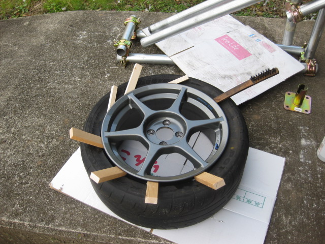 一次試作品 剛性不足でボツ 二次試作品 力の入り具合も上々です タイヤとあたる部分は若干斜めにカットしました 本当は板金を溶接したいところですが・・・・チャンスがあればってことで 実は三次試作もあったのですが,逆に剛性が落ちてボツ 二次試作品でFIXしました 早速,10年落ちくらいの98J 205/50R15で実験 かなり貼り付いていましたが,2周ほど徐々に力を入れていくと落ちてくれました 次は本命の225/45R16でRE01R これは1年から2年前のものなので簡単でした しかし偏平のせいかホイルのせいかわかりませんが,ビードが戻ってしまうので保持冶具が必要 木端を作ってはめることで何とかなりそうです 次はいよいよタイヤの取り外し レバー類を手配中です 近所じゃ欲しいものがぜんぜん手に入らず,結局通販です PR