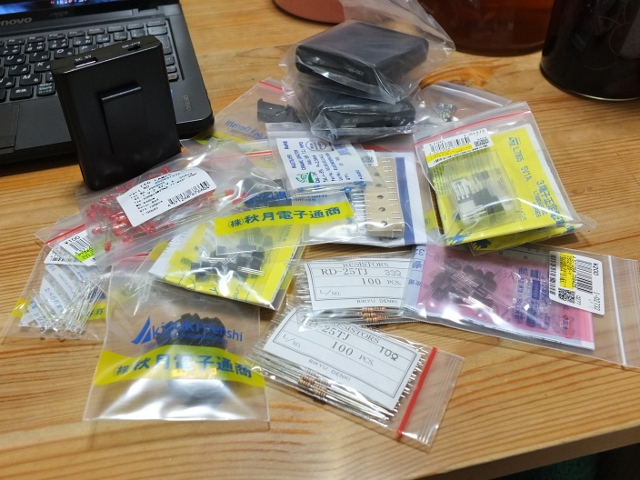 夜はこんな感じ クロの刺身,あら汁,明太子,高菜漬け クロは親父殿が釣り上げた物,こってり脂がのって激ウマでした そのアラで吸い物つくりましたが,へたくそなんで臭みが出てしまった 高菜は実家でつけた塩漬けで,これはもう何杯でもご飯が進む危険な食べ物です このほか,自家製アジの一夜干し,イカの刺身,みかんやら送ってもらったので,正月はこれで十分だな(笑) 感謝感謝,ご馳走様でした 秋月にパーツを追加注文 写真左から リモコンの電池はボタン電池2個の6V仕様に変更,赤外線LEDも3個に増加 受信側の電池はエネループ4本で実力5.2Vくらいで直結 受信ユニットはVer.2のノーマルプログラムと流星撮影用の繰り返しレリーズプログラム(出来損ない)の2種を用意し,用途に合わせてPIC交換することにした 伸縮ケーブルによりレイアウトにフレキシブル対応可能にしてみたがどうだろう? この部分の工作としてはこれでおそらく終了 必要に応じたプログラムを追加していくことでいろんなシチュエーションに対応できる・・・・はず だけど,何が必要な機能かいまだ把握できず(笑)