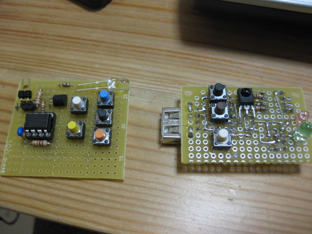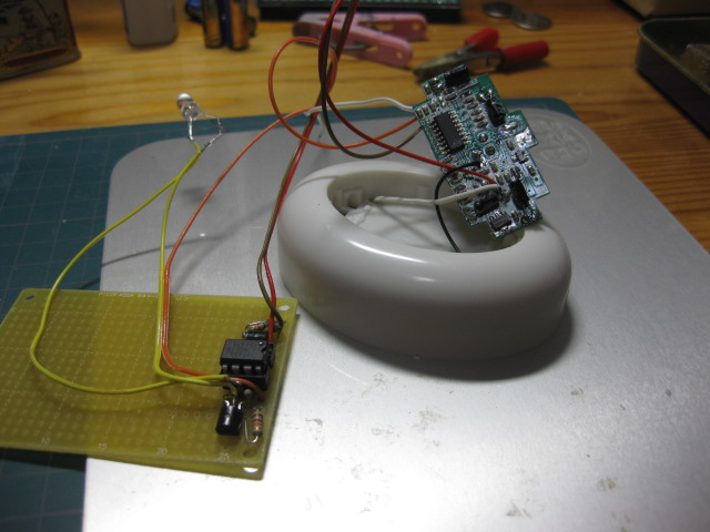 神出鬼没だし,動き早いし,そもそも人がいたら寄ってこないしね X-S1のズームを活かして野鳥が撮れたら・・・・素敵じゃん♪ そこでピコーンとアイデアが浮かびました まぁ技術的なシステムはすでに先人が実施されていますが,いかに簡単に作れるかの実践です 鳥が来たら反応するセンサが必要ですが,今回は一番手っ取り早そうなのは焦電センサです 人に反応して電灯をつけるシステムは焦電センサが一般的です 野鳥撮影なので,屋外の電源がない場所,しかも設置が簡単なほうが良さそう 回路から自作するとサイズやパッケージングが問題になるのは見えてるので,条件に合う既製品を探してみると・・・・・ありました http://akizukidenshi.com/catalog/g/gM-04425/ 自作しても600円では完成しません,こいつは安いです これを改造していきます 当初,こいつのLEDを赤外線LEDに変えれば,とりあえずシャッターは切れるだろう,と思ってましたが大間違い 受信センサは38kHzで変調されていて,この周期じゃないと反応しないんです http://akizukidenshi.com/catalog/g/gI-03292/ んで,変調型リモコンを作ったわけですが,これまた不思議なことにVer.1の受信プログラムはどんなリモコンにも反応するようにしてるのに,このリモコンでは反応しない・・・Orz この理由は不明なんだけど,であれば受信機も専用コード受信対応にしちゃえーと作ったのが前回の話 この応用で専用コードによる送信機能をInterigent LEDライトに組み込めば,鳥を検知したら赤外線を発光する仕組みが構築できます まずはある程度最終形態を模擬してバラック組みによる機能テスト ハードを新しくすると必ず躓き(笑)トライ&エラーを繰り返しで,何とかクリヤ 実は赤外線LEDは100mAと大きな電流が必要で,発光LED数mAのレギュレータからは供給できず,Trを組んで対応したりとちょっと大変でした 機能はOKになったので,パッケージング 下側の隙間にかろうじて収まりました 左には赤外線LED,上には電源スイッチを追加してます 最後に発光LEDは鳥が驚くかもしれないので外したら,なぜか赤外線が出なくなる おそらく消費電流が少なすぎでレギュレータが動かなかった? などのトラブルも解決しつつようやく完成 明日,実践テストしてみたいと思います 11/17はしし座流星群とのことで急遽プログラムを組んで撮影してみました |